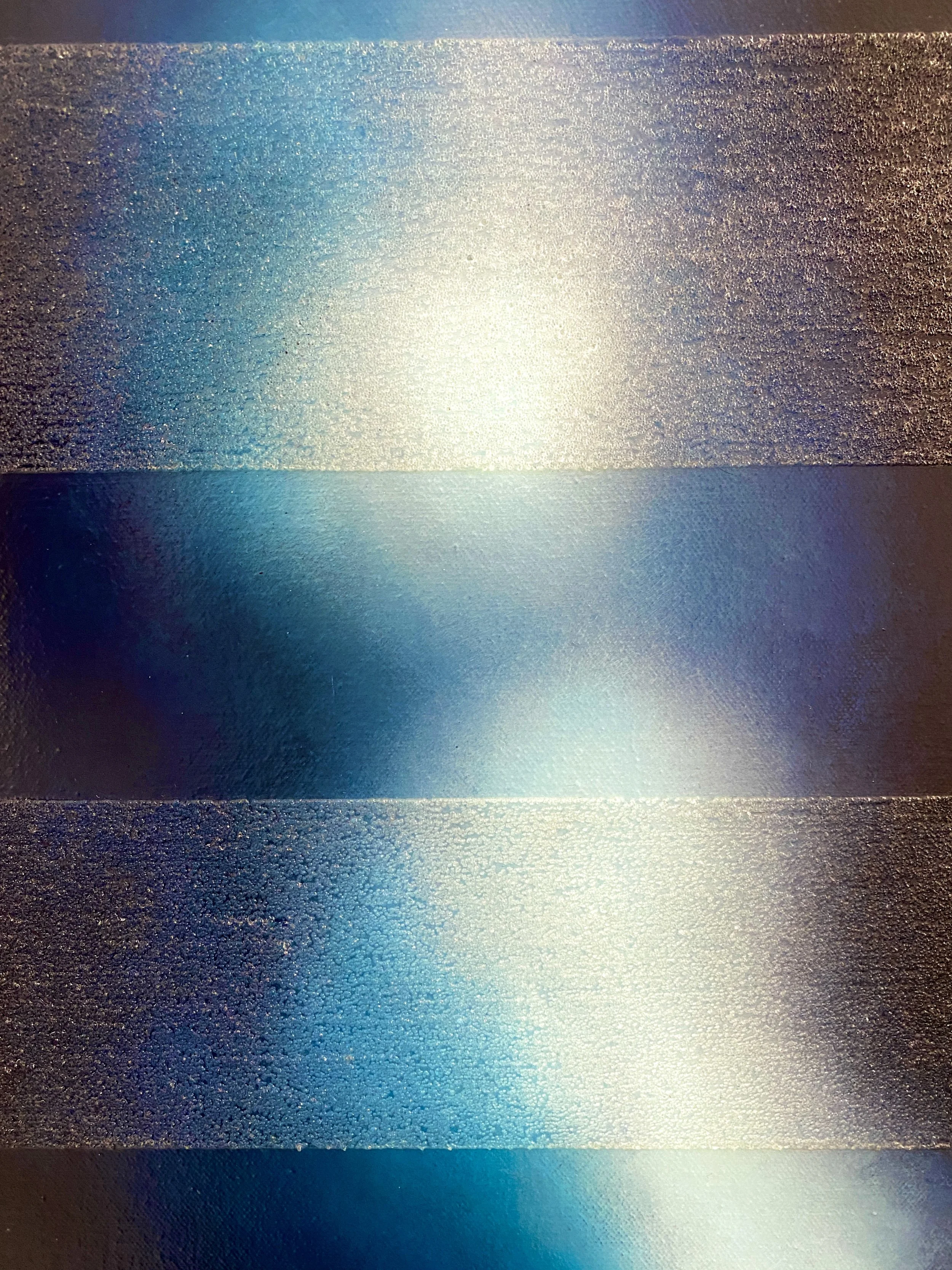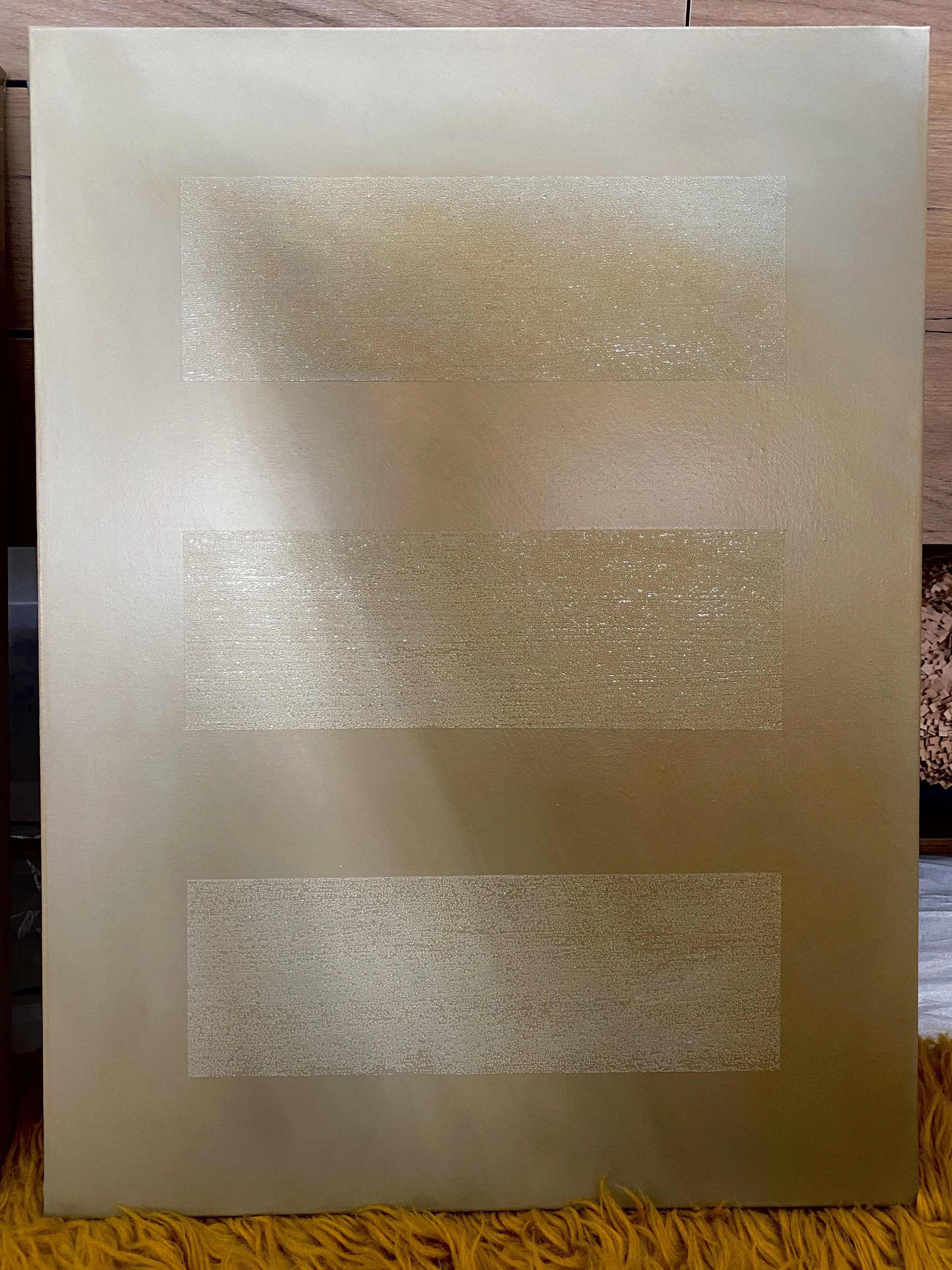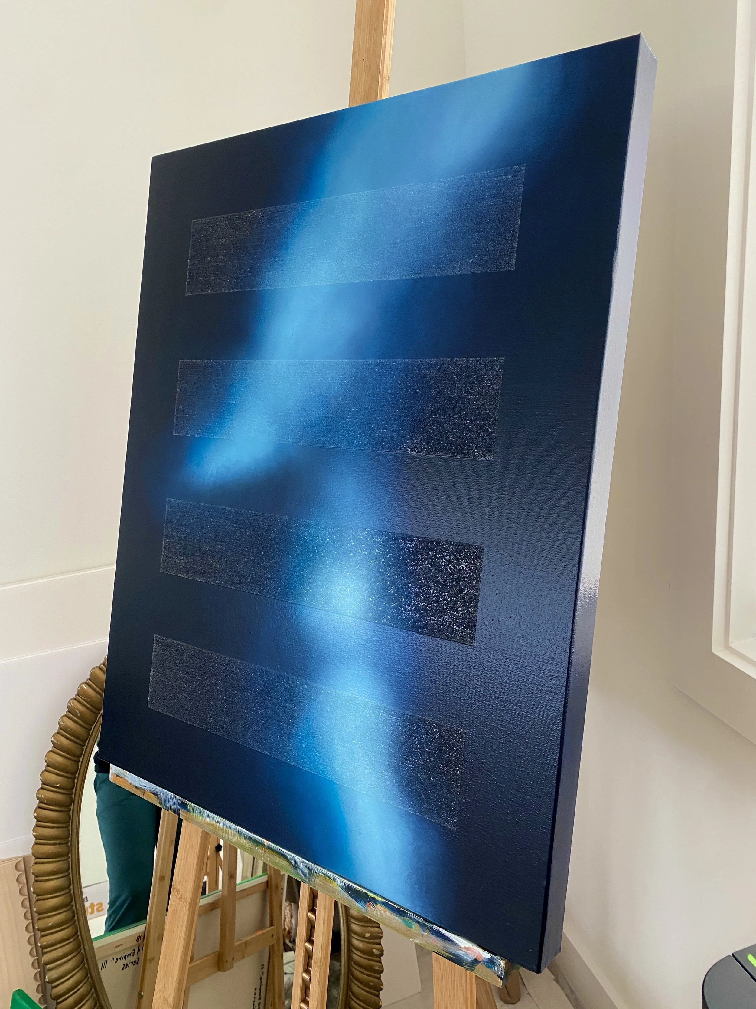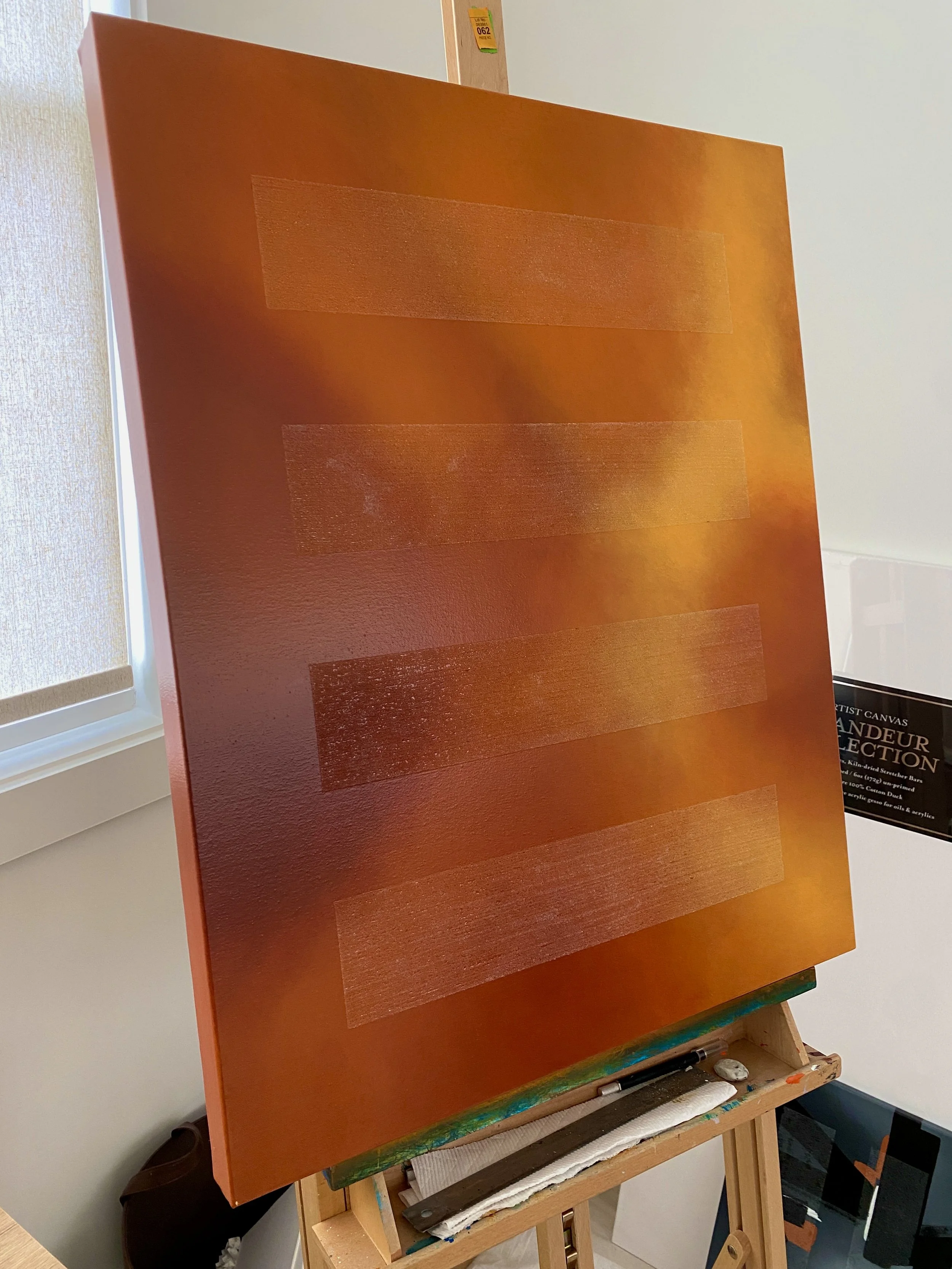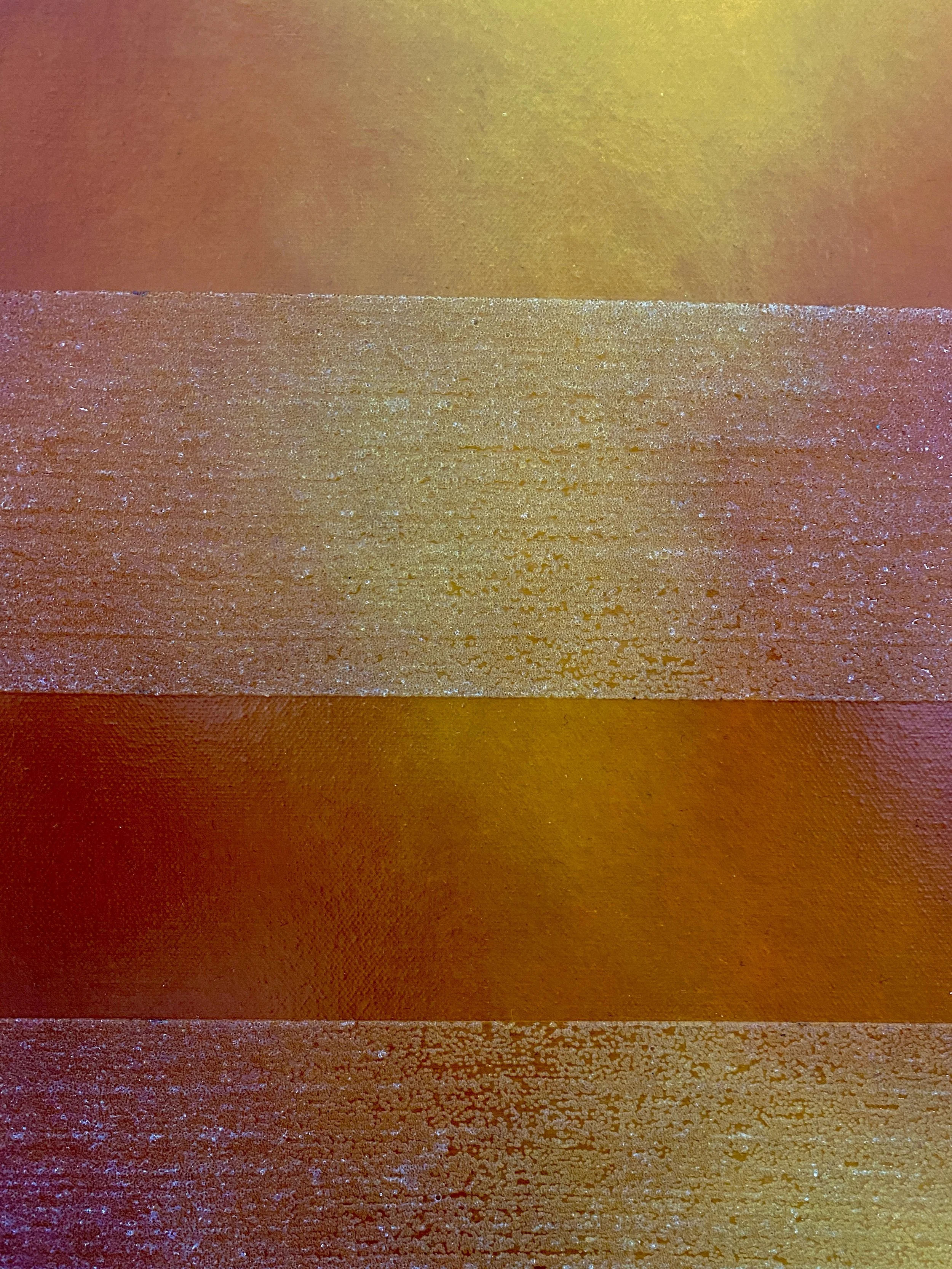 The Glass Beads Series is called such because there are literal glass beads in each piece- thousands of them! I used Golden Paints Glass Beads Gel in the “stripes” on each piece. In a very thin layer, these beads dry clear so you can see the painting and colors through them. I think it’s a really neat way to add texture without distracting from the painting itself. In certain lights and angles, they even have a beautiful sheen to them.