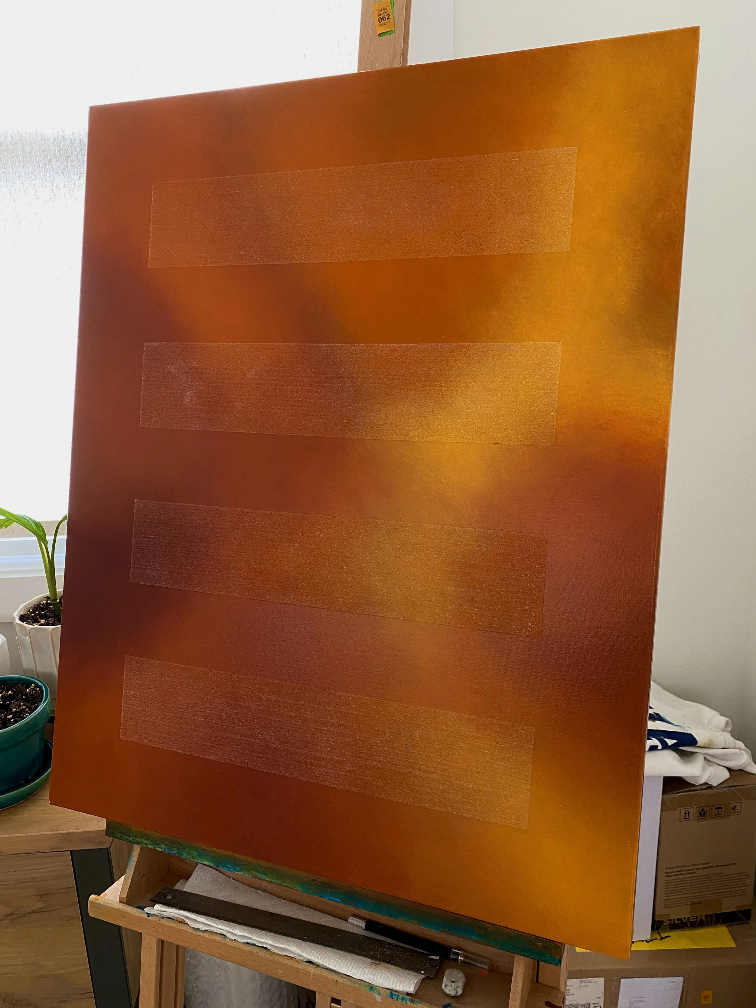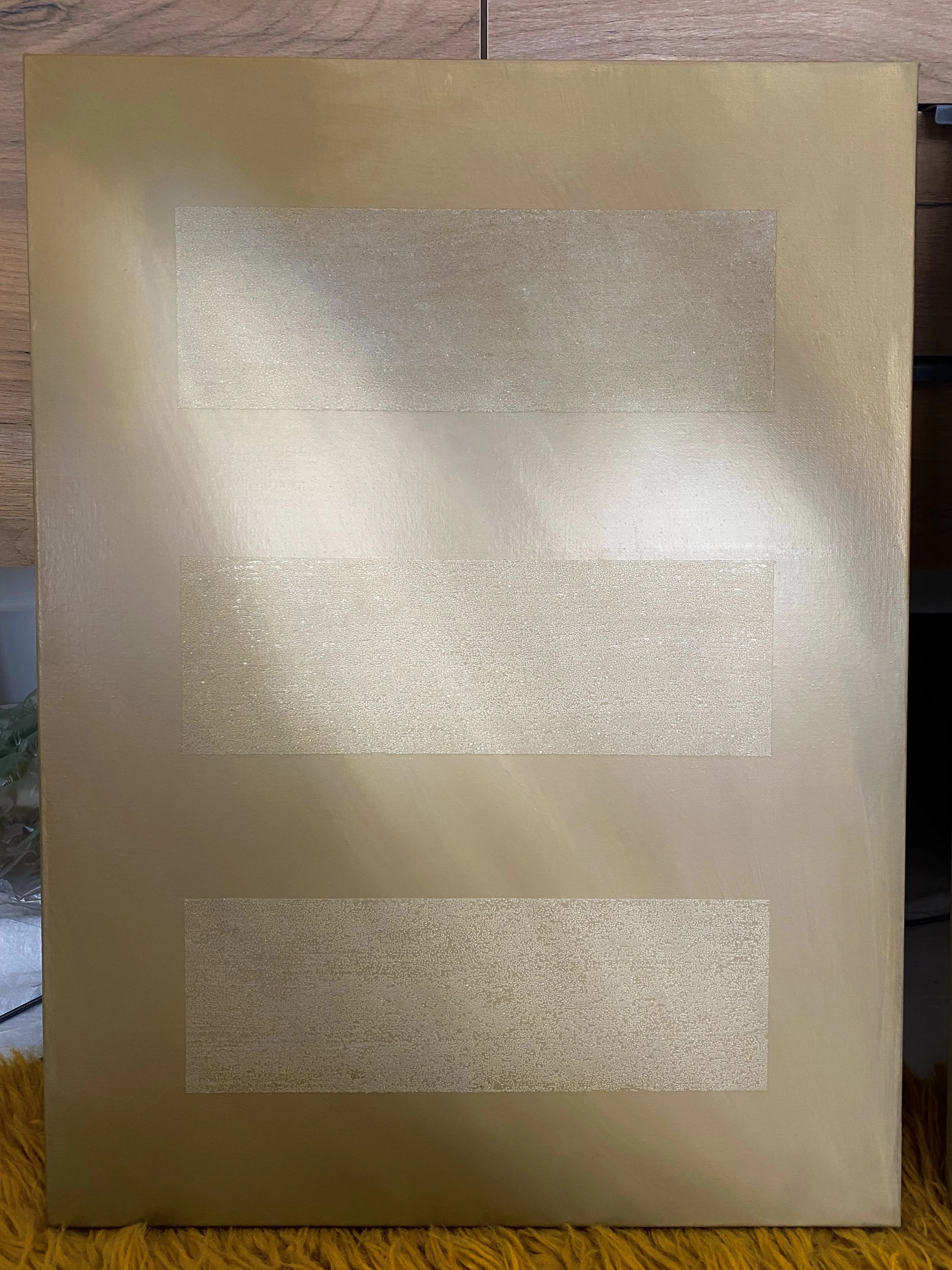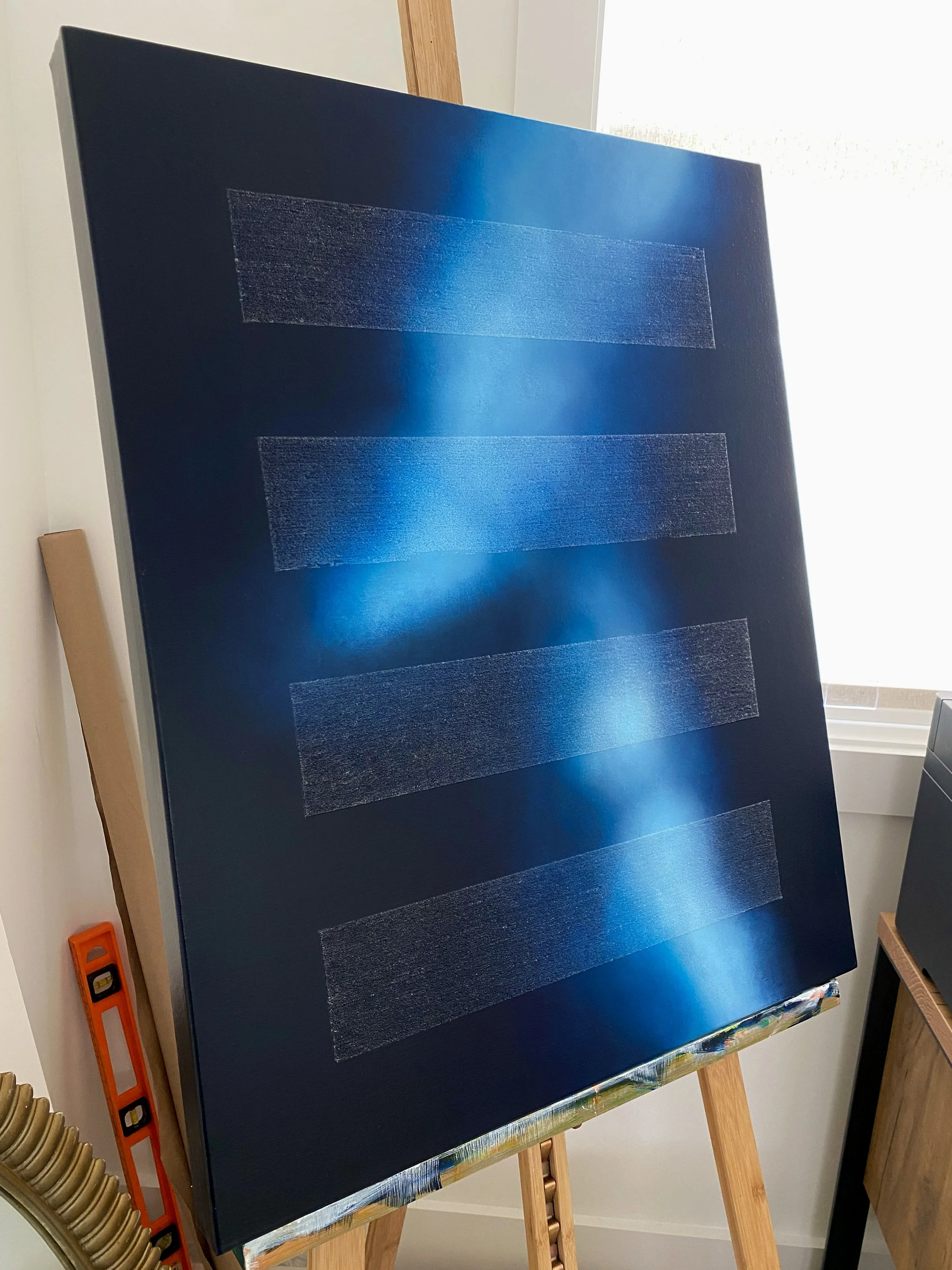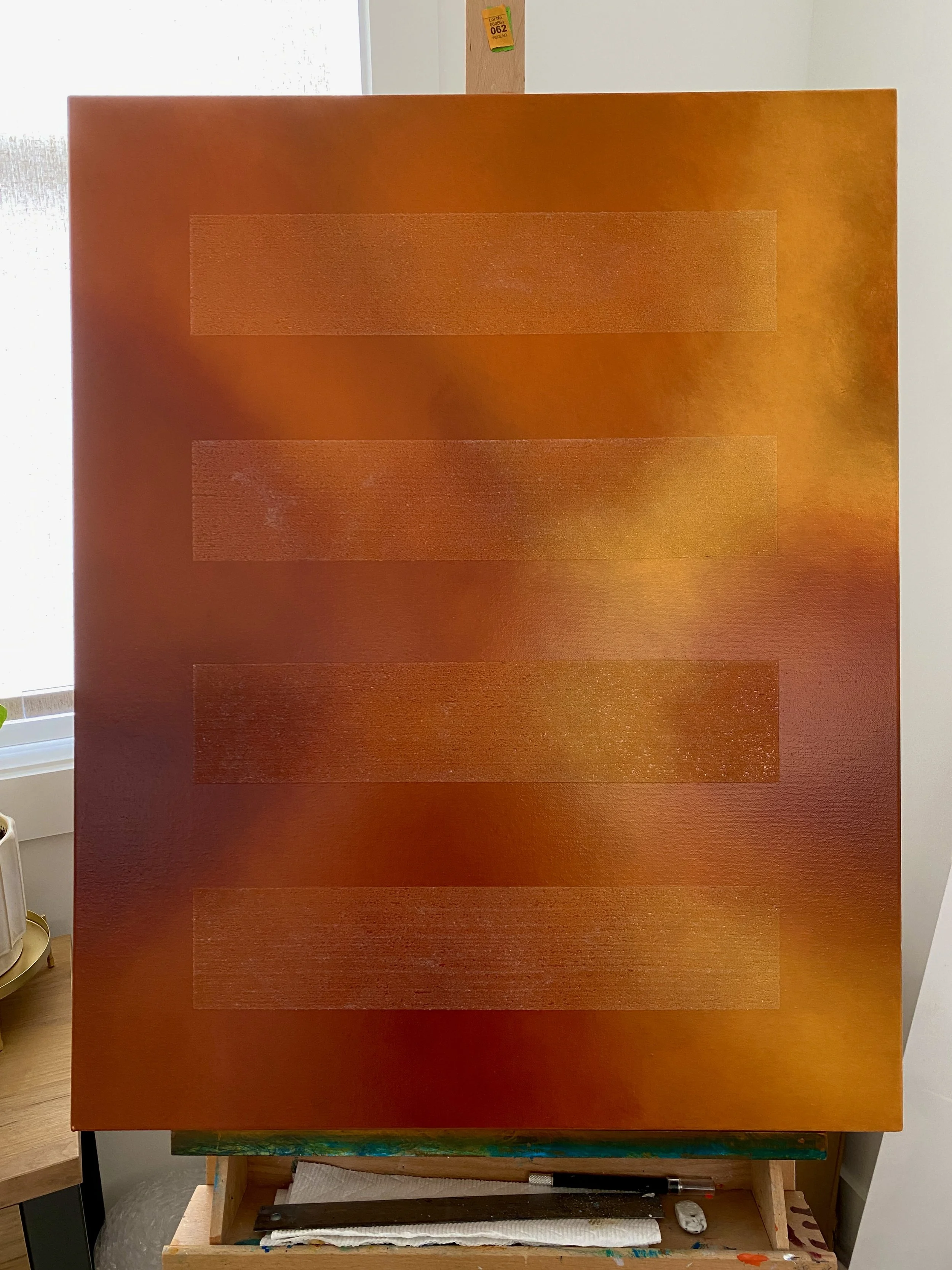 The Glass Beads Series is called such because there are literal glass beads in each piece- thousands of them! I used Golden Paints Glass Beads Gel in the “stripes” on each piece. In a very thin layer, these beads dry clear so you can see the painting and colors through them. I think it’s a really neat way to add texture without distracting from the painting itself. In certain lights and angles, they even have a beautiful sheen to them.