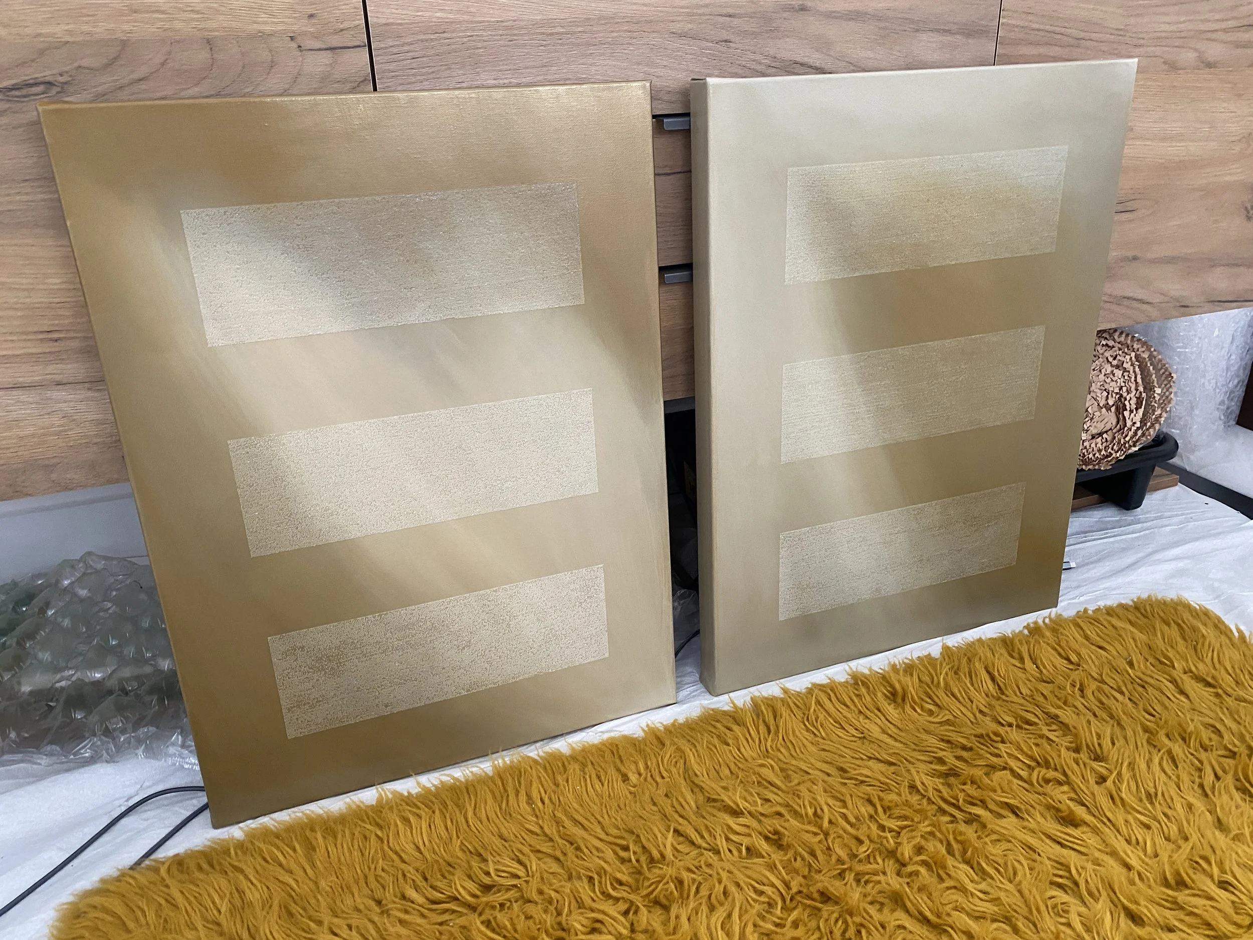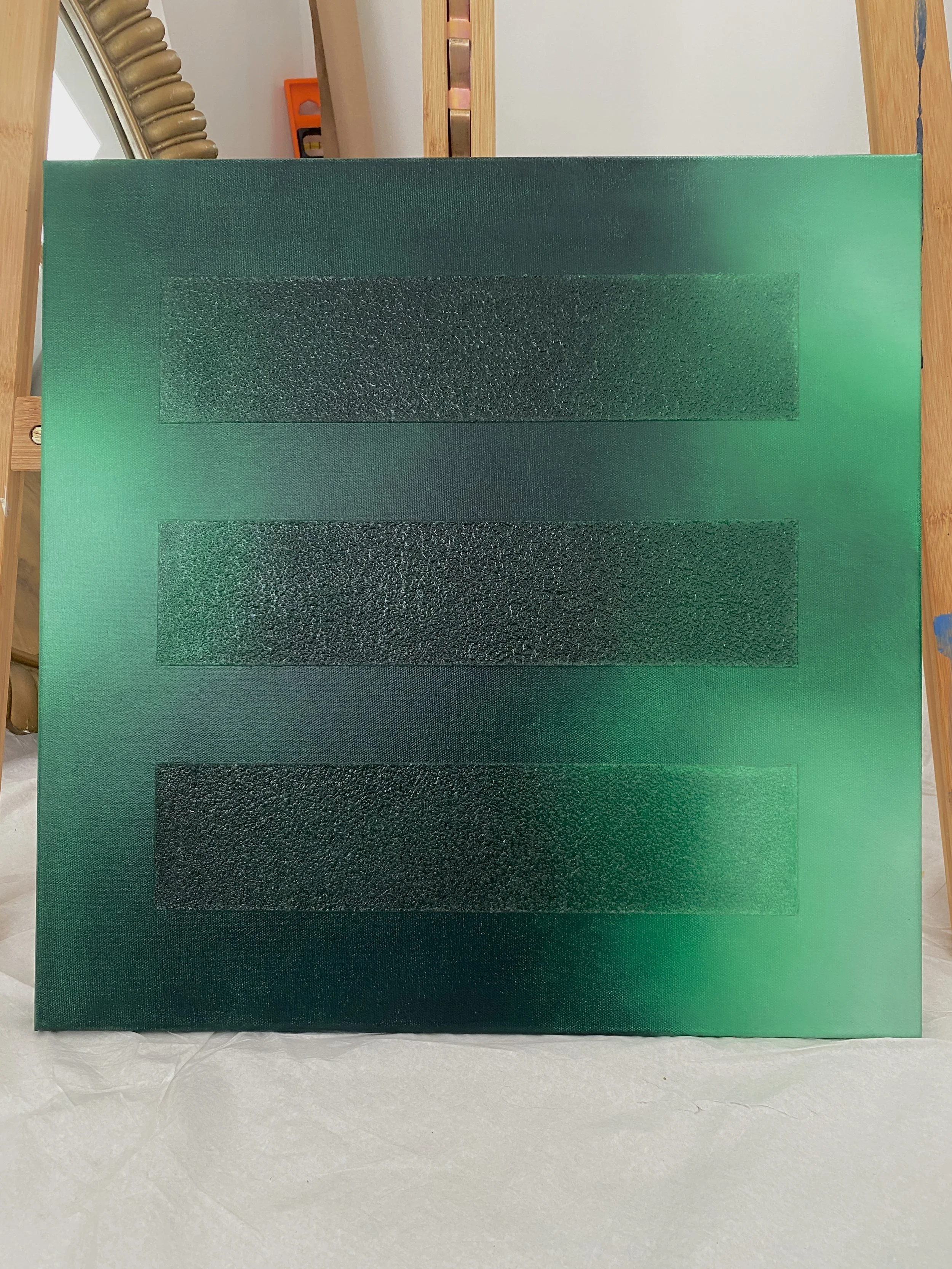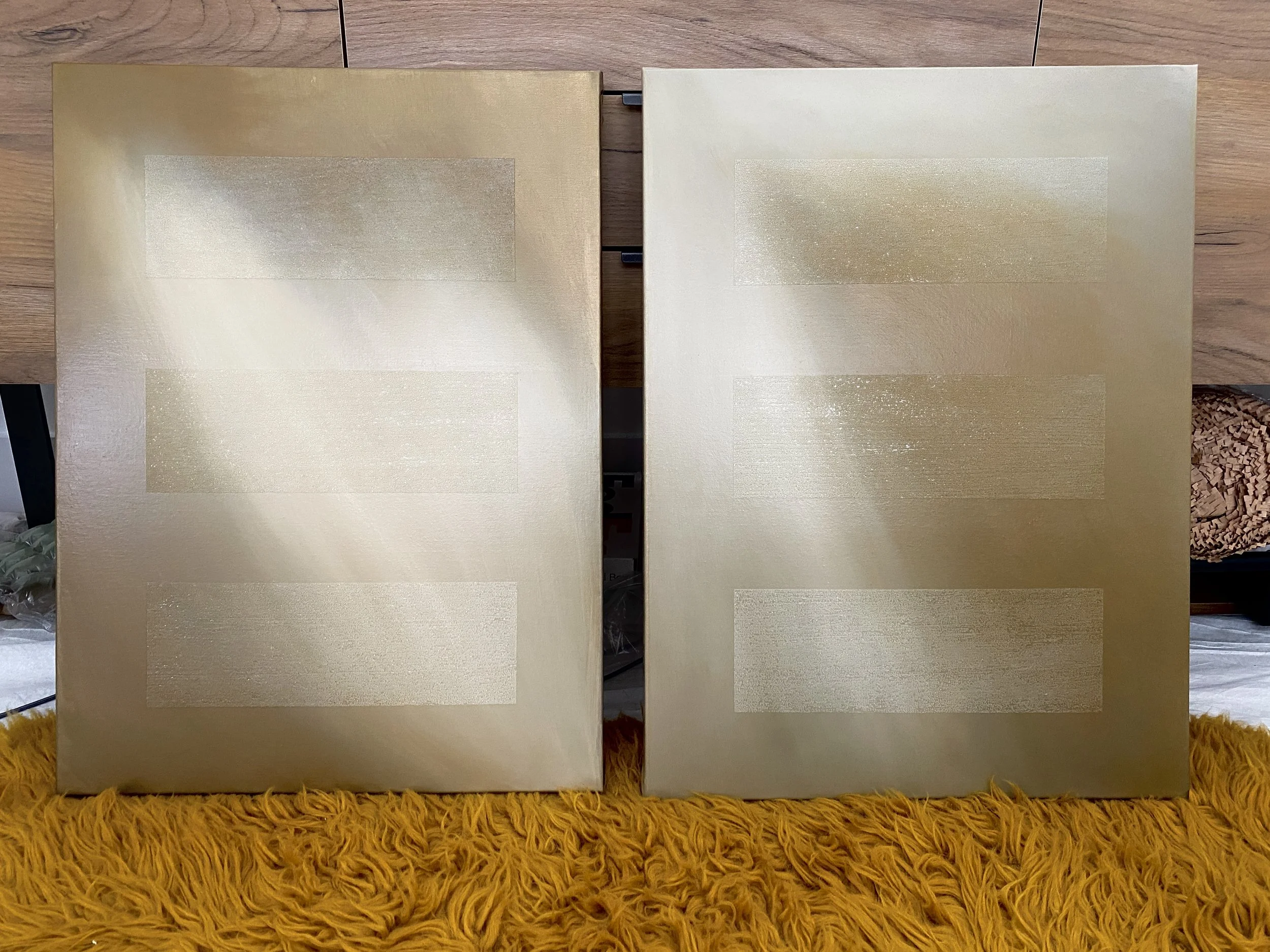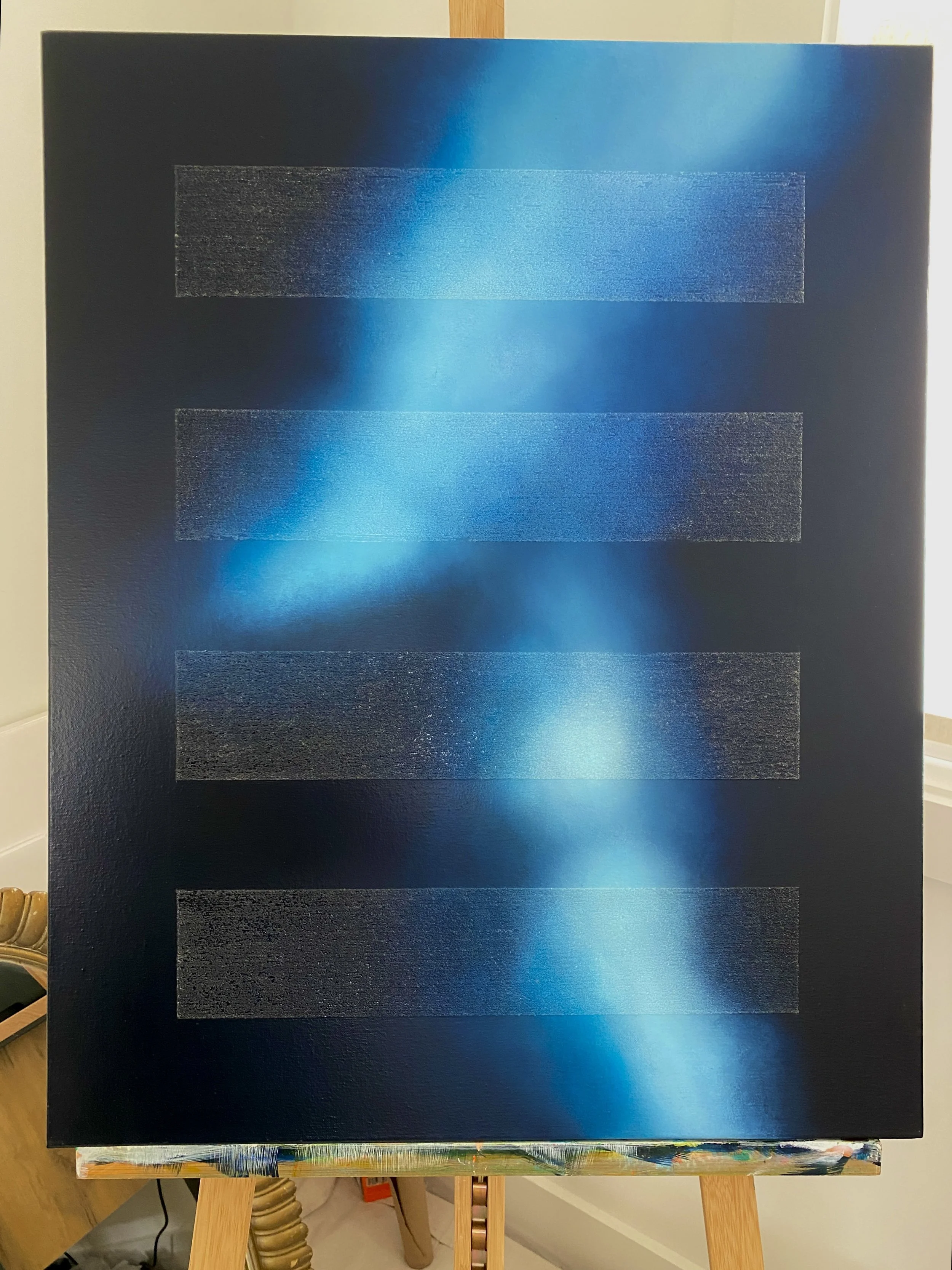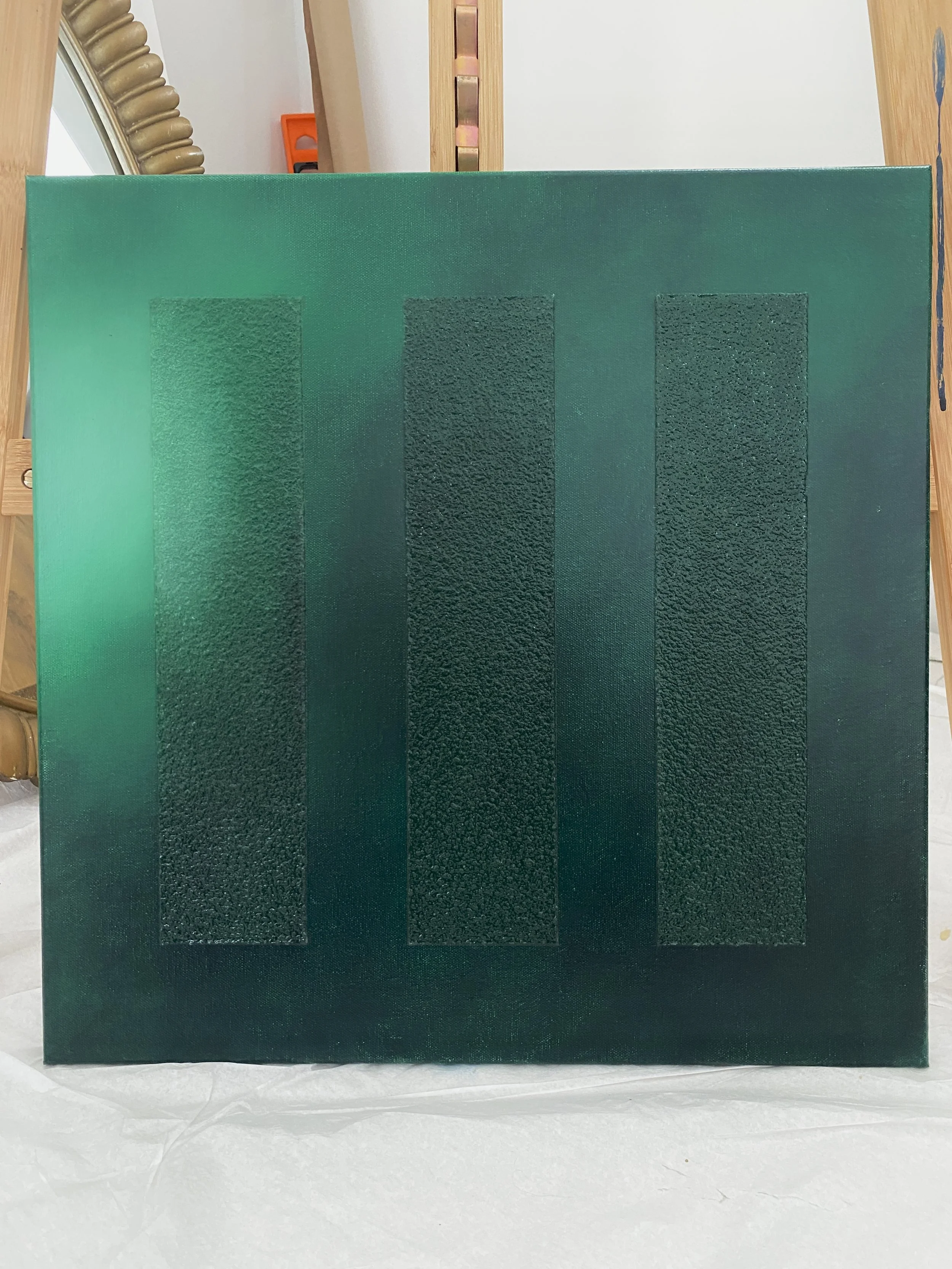 The Glass Beads Series is called such because there are literal glass beads in each piece- thousands of them! I used Golden Paints Glass Beads Gel in the “stripes” on each piece. In a very thin layer, these beads dry clear so you can see the painting and colors through them. I think it’s a really neat way to add texture without distracting from the painting itself. In certain lights and angles, they even have a beautiful sheen to them.