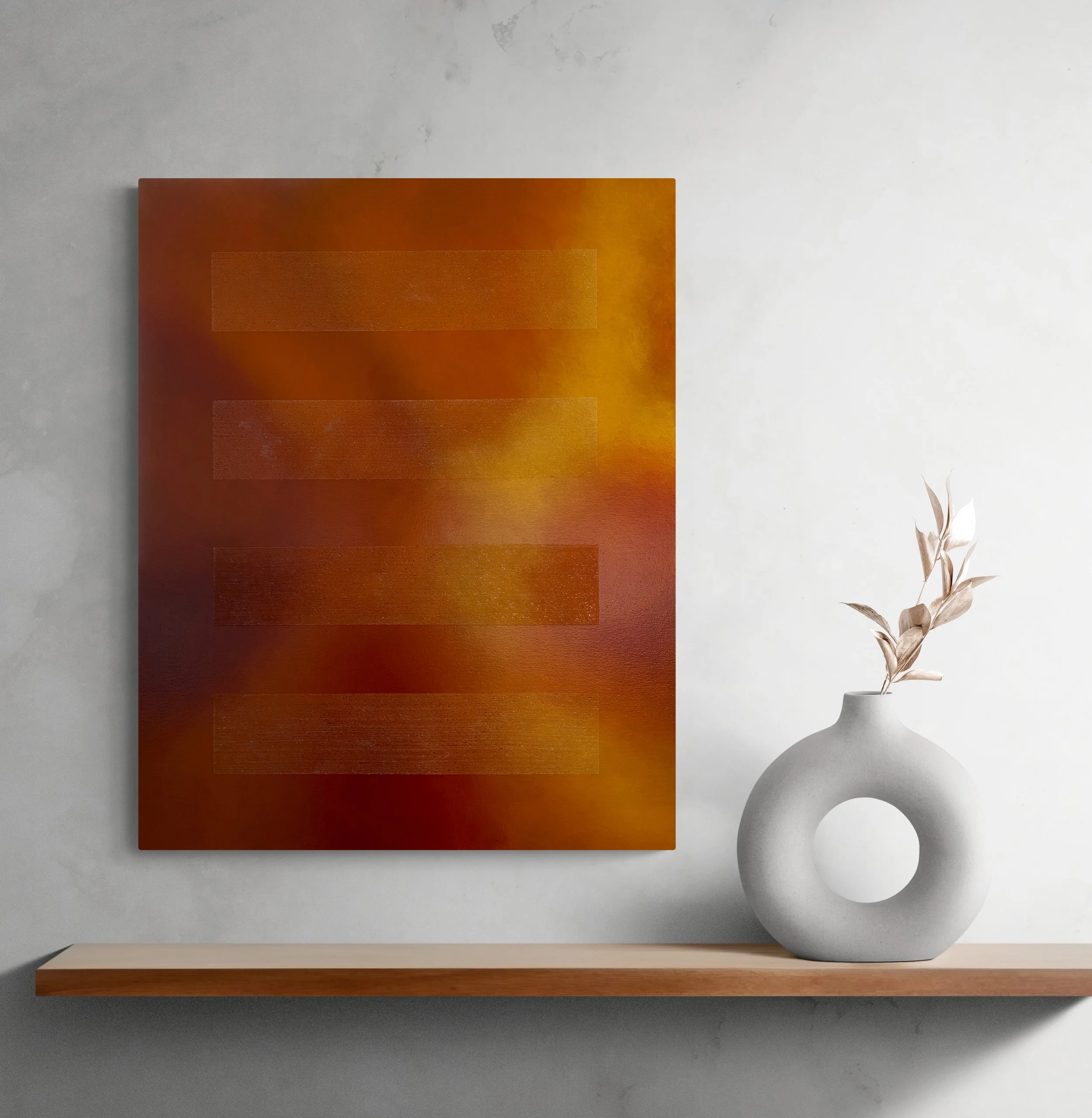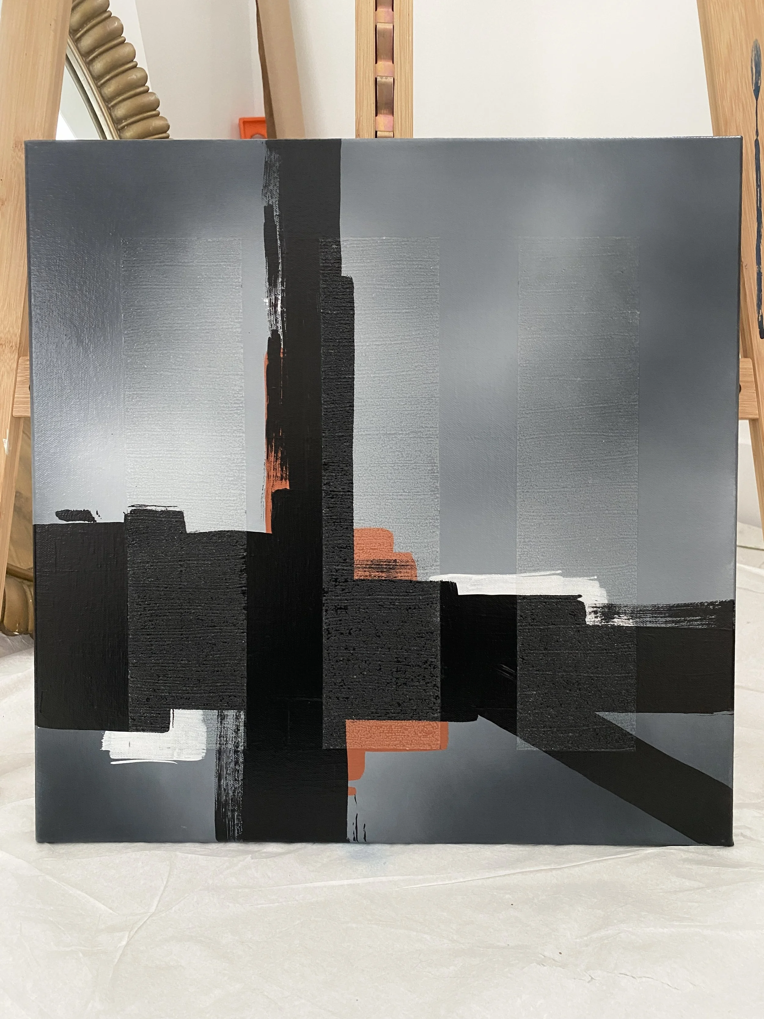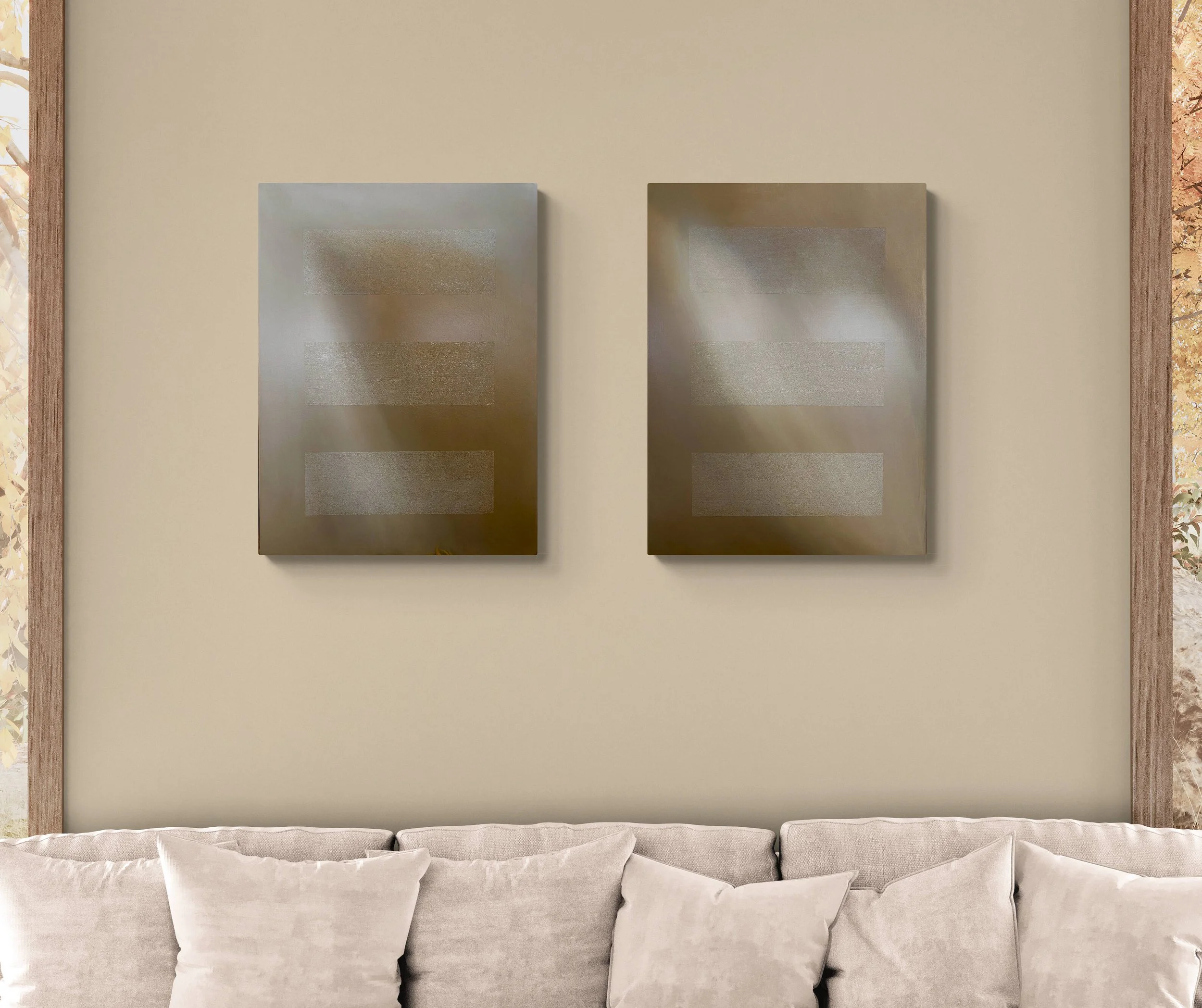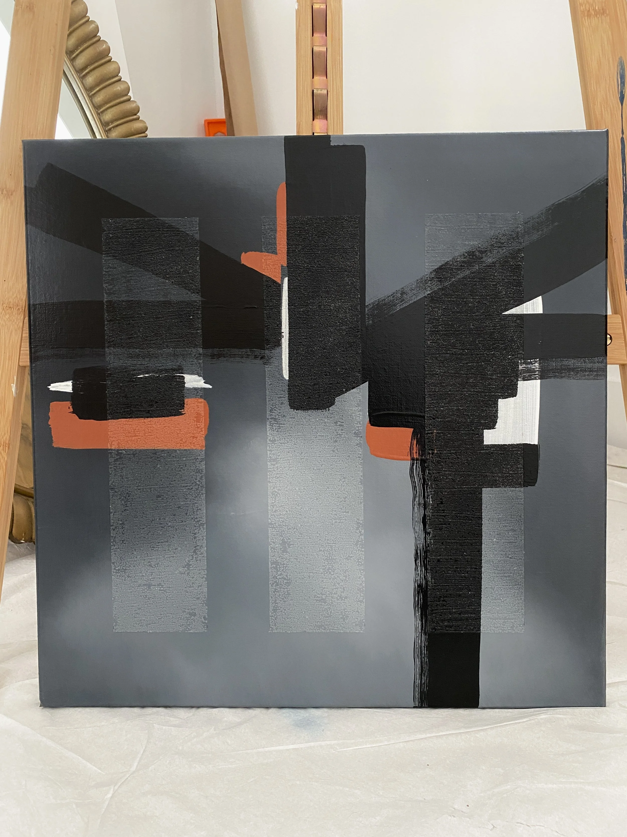 The Glass Beads Series is called such because there are literal glass beads in each piece- thousands of them! I used Golden Paints Glass Beads Gel in the “stripes” on each piece. In a very thin layer, these beads dry clear so you can see the painting and colors through them. I think it’s a really neat way to add texture without distracting from the painting itself. In certain lights and angles, they even have a beautiful sheen to them.