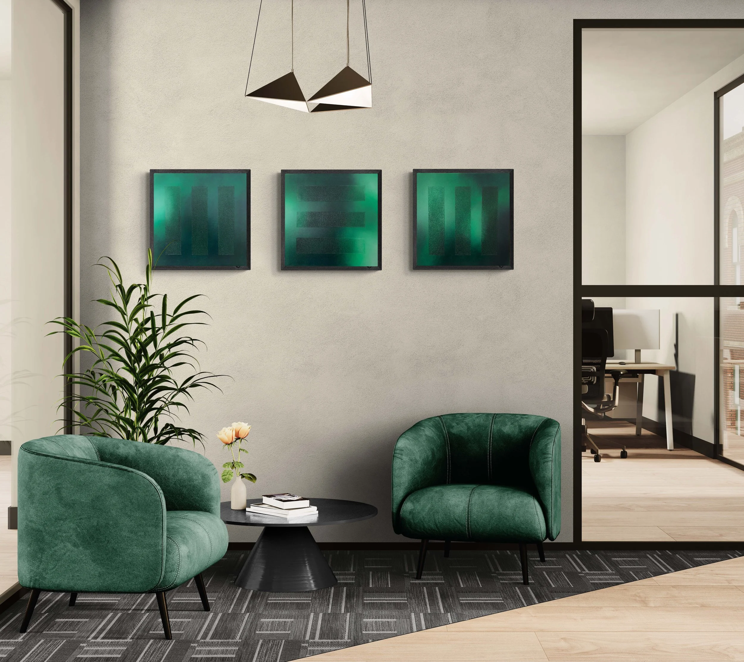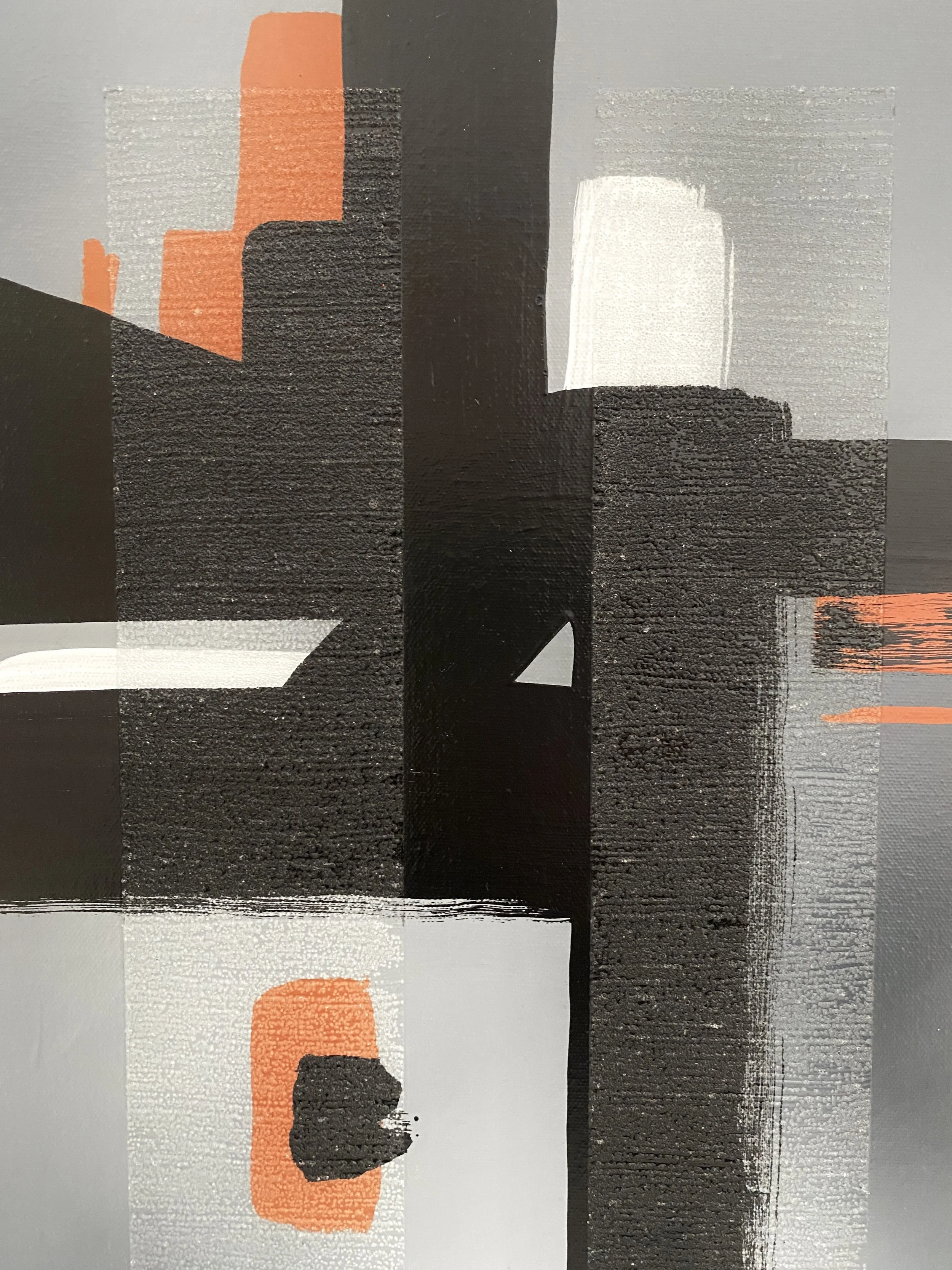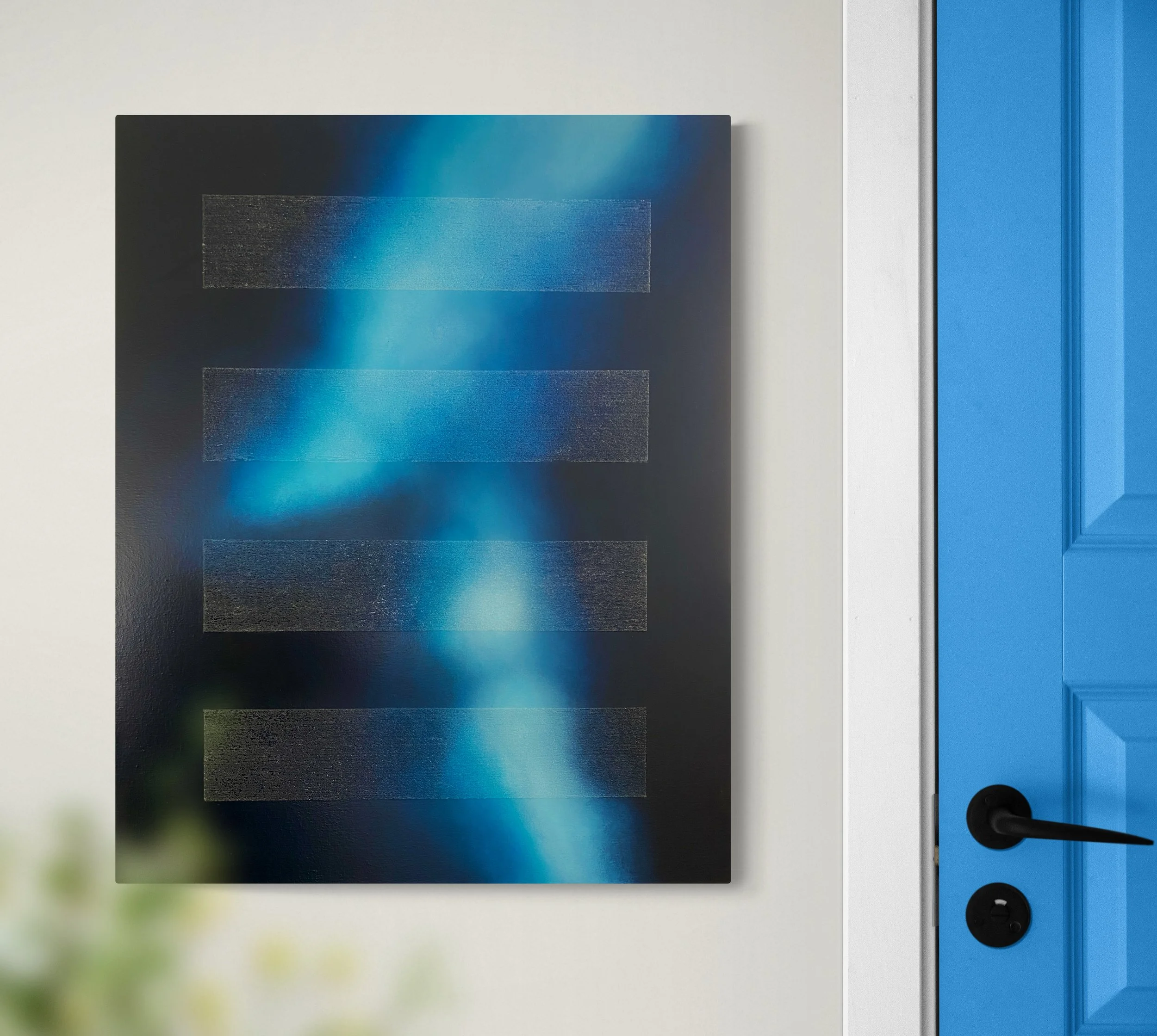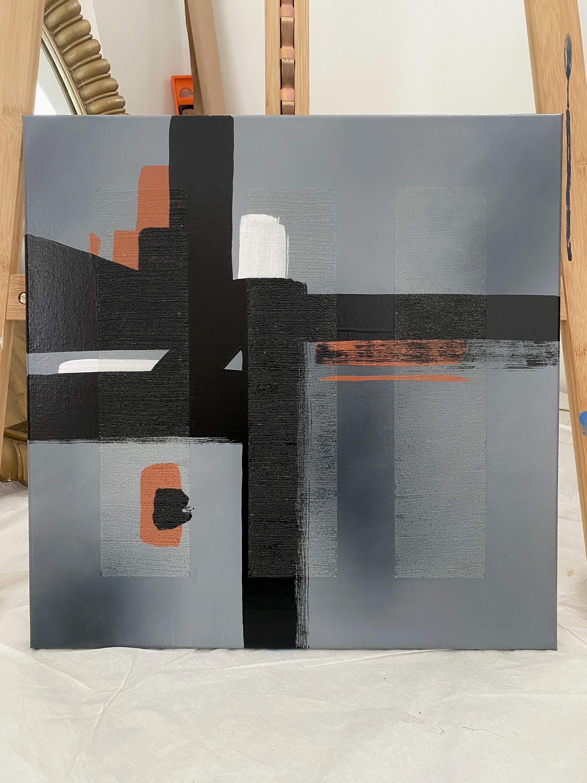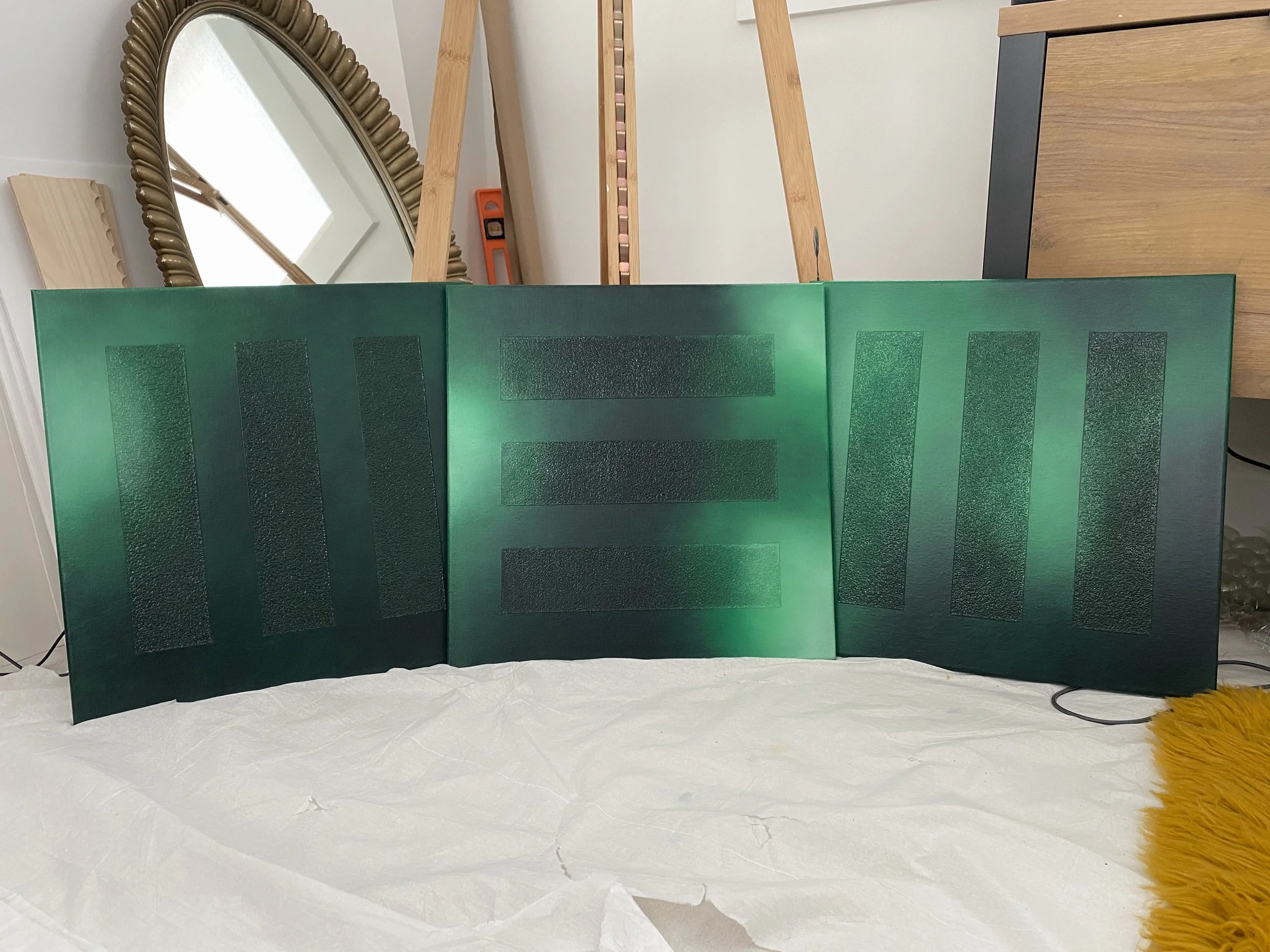 The Glass Beads Series is called such because there are literal glass beads in each piece- thousands of them! I used Golden Paints Glass Beads Gel in the “stripes” on each piece. In a very thin layer, these beads dry clear so you can see the painting and colors through them. I think it’s a really neat way to add texture without distracting from the painting itself. In certain lights and angles, they even have a beautiful sheen to them.
